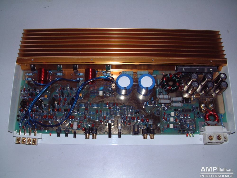 1 × 484 Watt Kanal 1 + 2 gebrückt an 4 Ohm bei 13,4V Versorgungsspannung