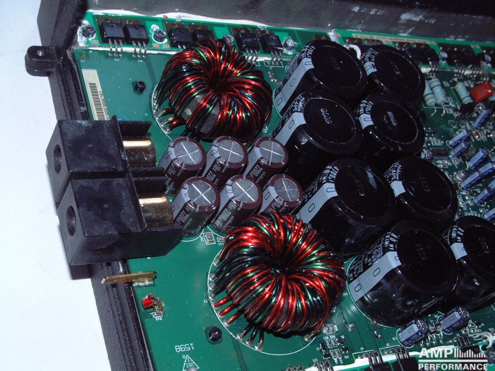 1 × 1282 Watt Kanal 1 + 2 gebrückt an 4 Ohm bei 13,3V Versorgungsspannung